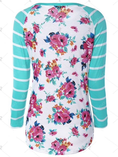 Fresh Stripe Floral Print Long Raglan Sleeve T-Shirt